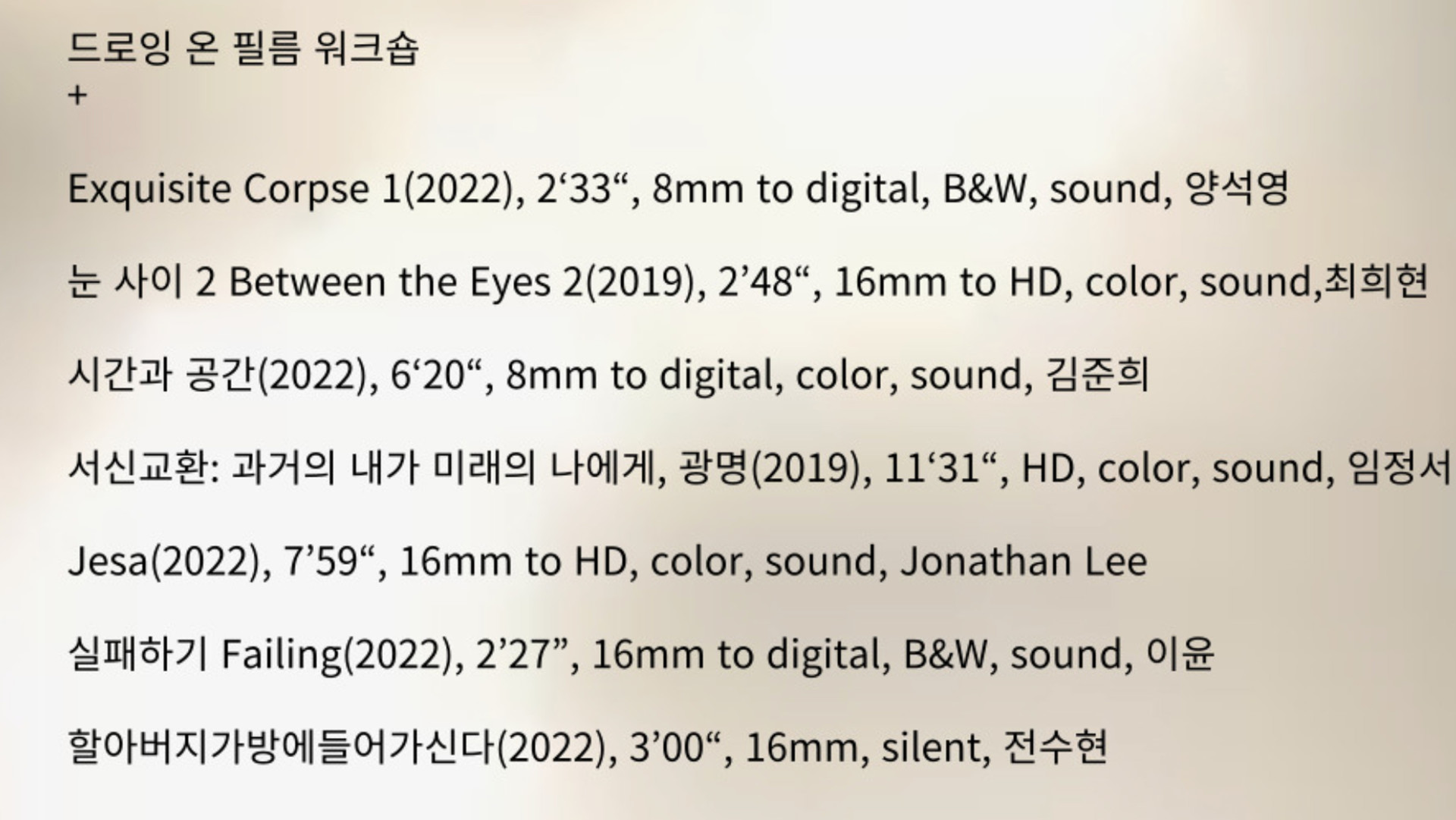 - 일시 : 2022. 10.7 (금) 드로잉 온 필름 워크숍 4.30pm / 스크리닝 6pm